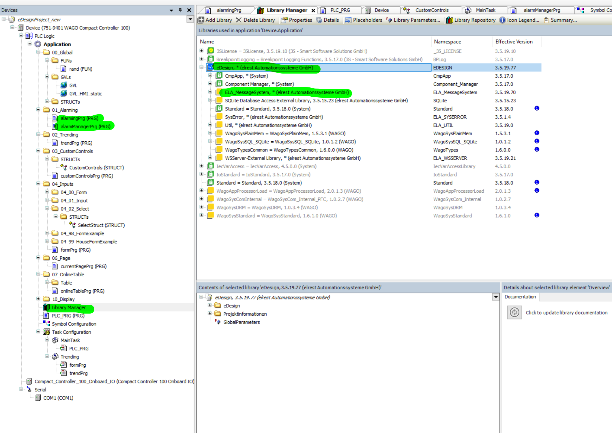 - ELA_MessageSystem – The core alarm handling library -> this is included under PLCVisu library