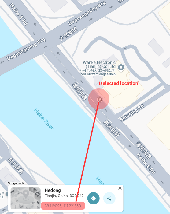 Tip: To find the correct decimal value, left-click a location in Google Maps and copy the first number from the popup box.